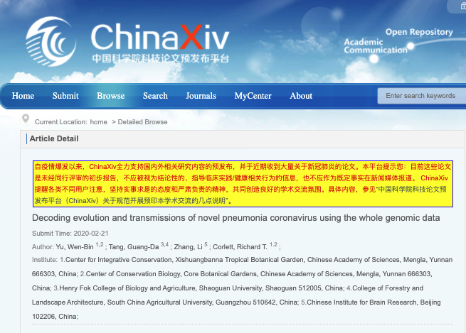Post WHO conference, let's remember that paper published on the Saturday 22nd Feb by a very unlikely team lead by conservation biologists from Yunnan on a Chinese preprint site, that: